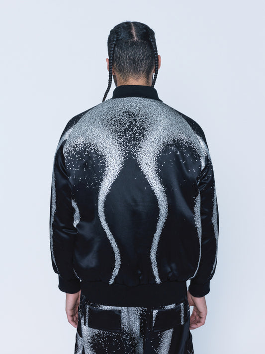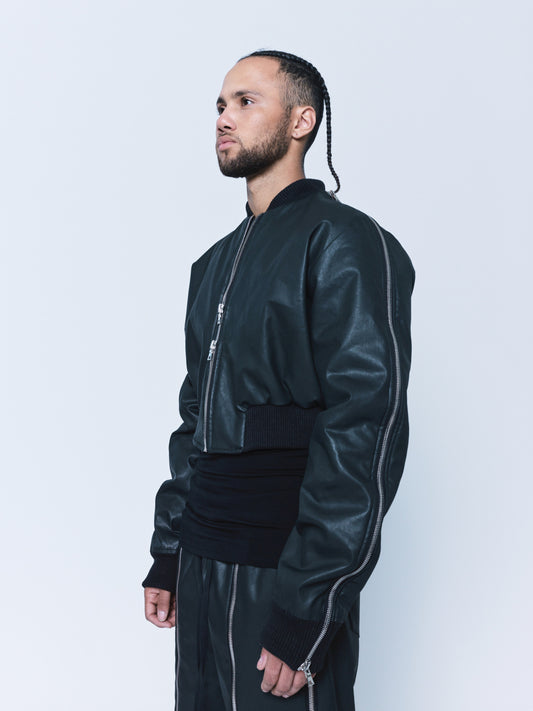 966 Matte Black Coated Denim Zipper Bomber Unisex