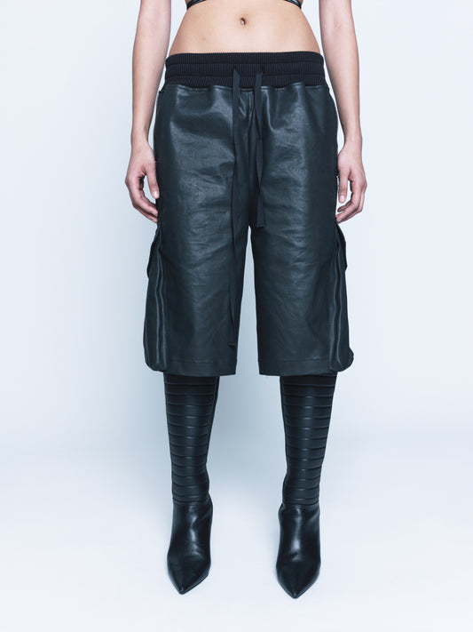 288 Black Cargo Coated Denim Shorts Unisex